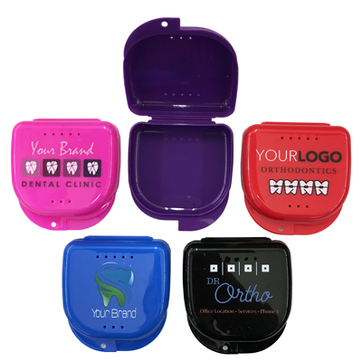 These sturdy cases are perfect for dentists and orthodontists. It can help protect retainers or mouth guards and has plenty of room on top for your logo and contact information!